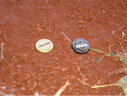 Several bottle tops are pushed into the surface of the soil in areas vulnerable to erosion. The bottle top protects the soil underneath so that, when the surrounding soil erodes, the soil underneath the top will remain and form a pillar. This method is recommended when all the other options are not possible to be pursued. Also, the bottle top method should only be applied to estimate sheet erosion, and before erosion has taken place as well as away from traffic areas.
