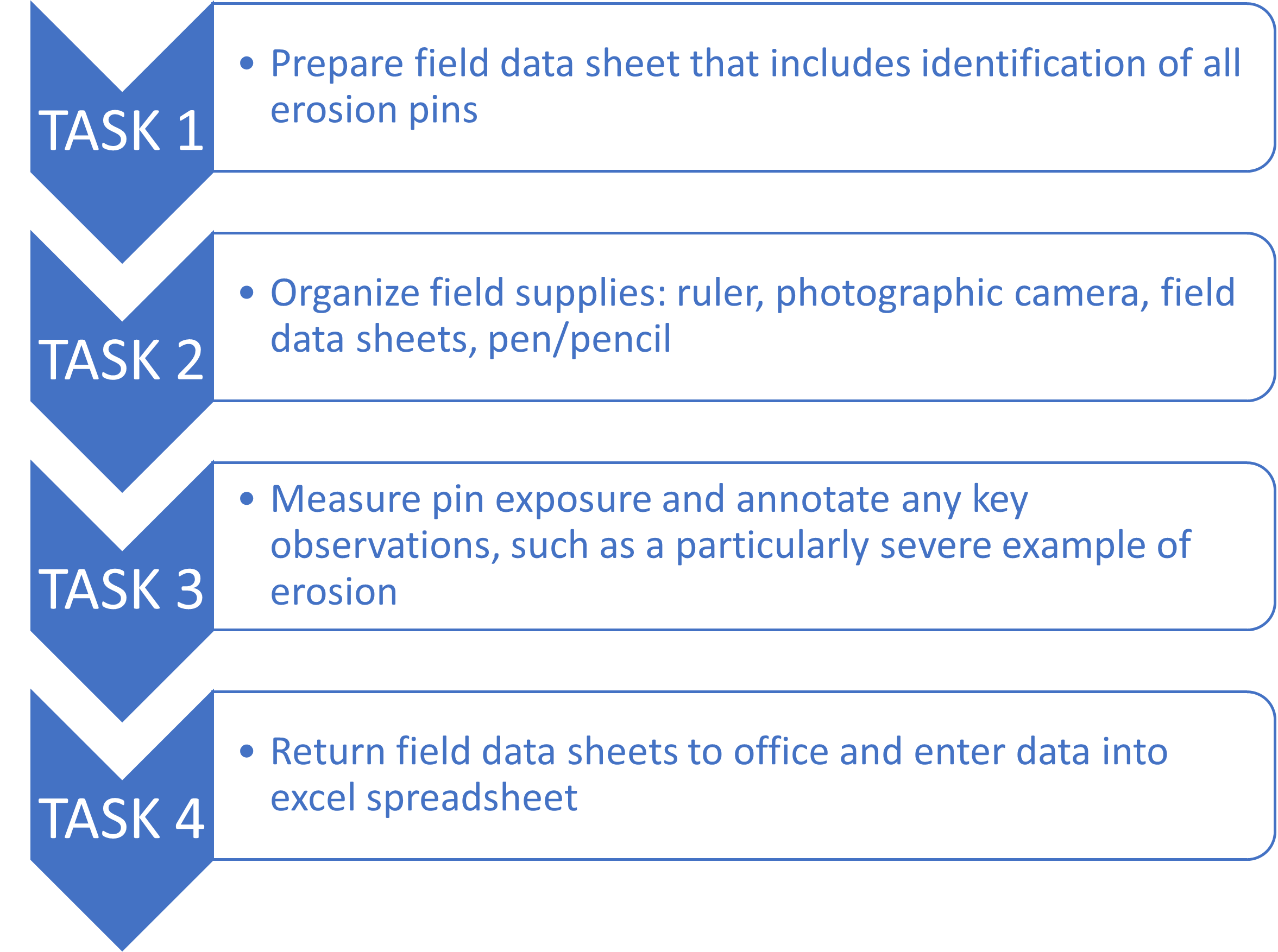The basic for steps to prepare for a field day to survey erosion pins.