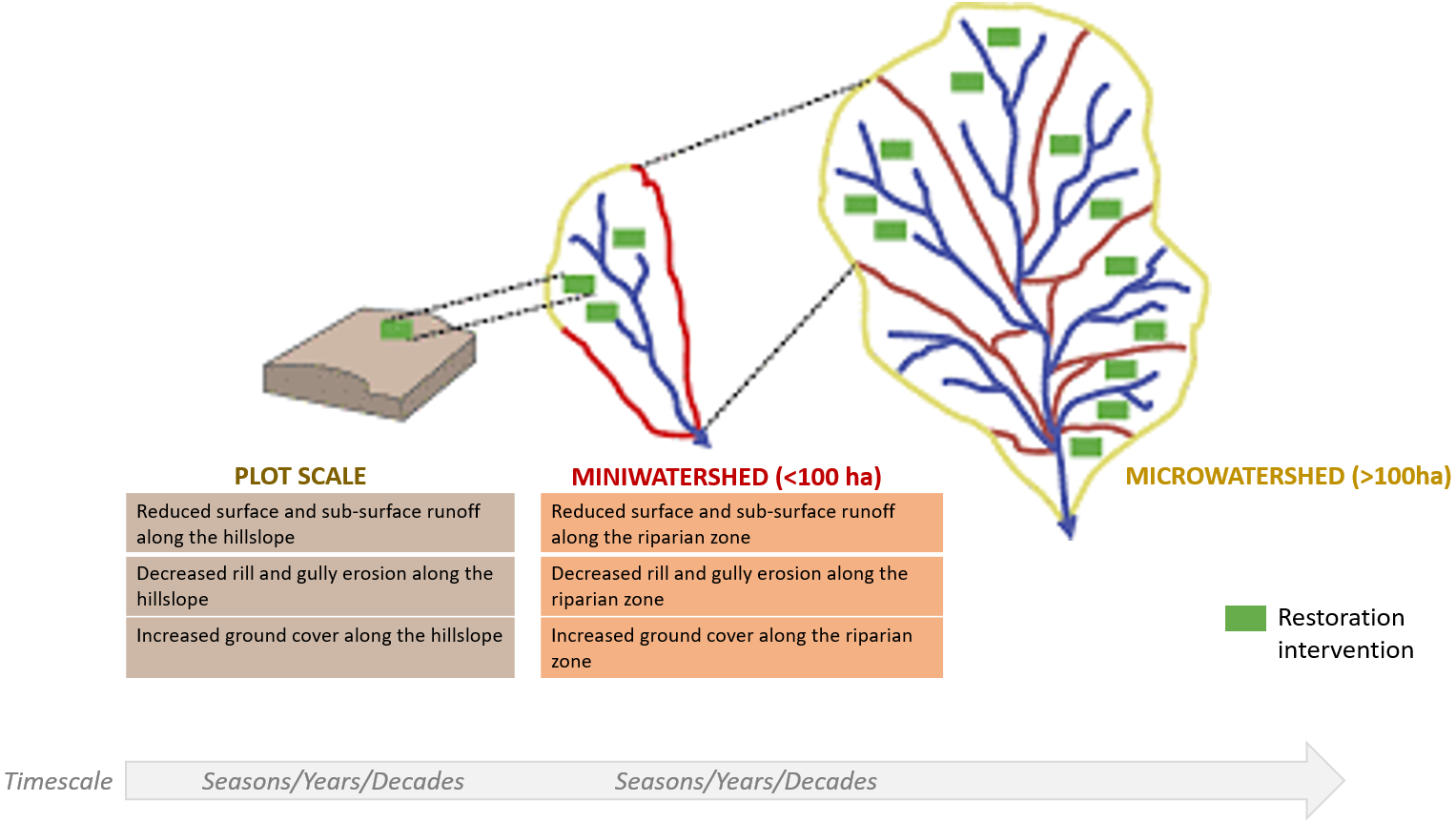 It is possible to infer from what has been previously presented that the pathway of change for soil erosion can be highly variable. It depends on the type of erosion, soil type, erosion control measure, land use, edaphoclimatic characteristics, agronomic practices, terrain slope, and landowner capacity to adopt practices, and the scale at which practices are implemented. Therefore, estimating how long it may take to see reductions in soil erosion is not advisable. What is highlighted in the pathway of change, instead, are the key variables for which changes can signal a positive or negative trend towards controlling erosion.